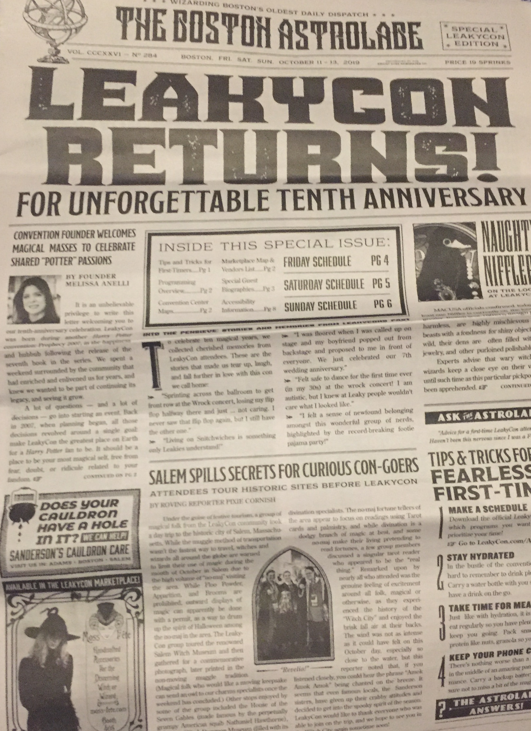 Leaky Con is a Harry Potter themed convention, and I saw their call for volunteers on Twitter months before I even moved to Boston. Since I knew I’d be in Boston in October, I jumped on the chance to submit my name as a volunteer. A couple of weeks before the event, I got a followup to signup for volunteer shifts, and since I don’t have class on Friday, I was able to commit to spending Friday volunteering. This was the 10th Leaky Con, so that added an extra layer of fun to the event.