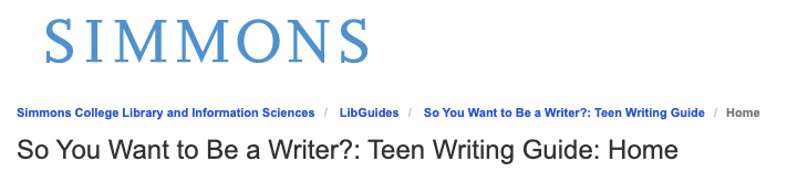 This LibGuide was created for LIS 407 – Information Sources and Services in the Fall of 2019. The guide is designed for teen patrons of a public library who may be interested in pursuing writing as a hobby or potential career.